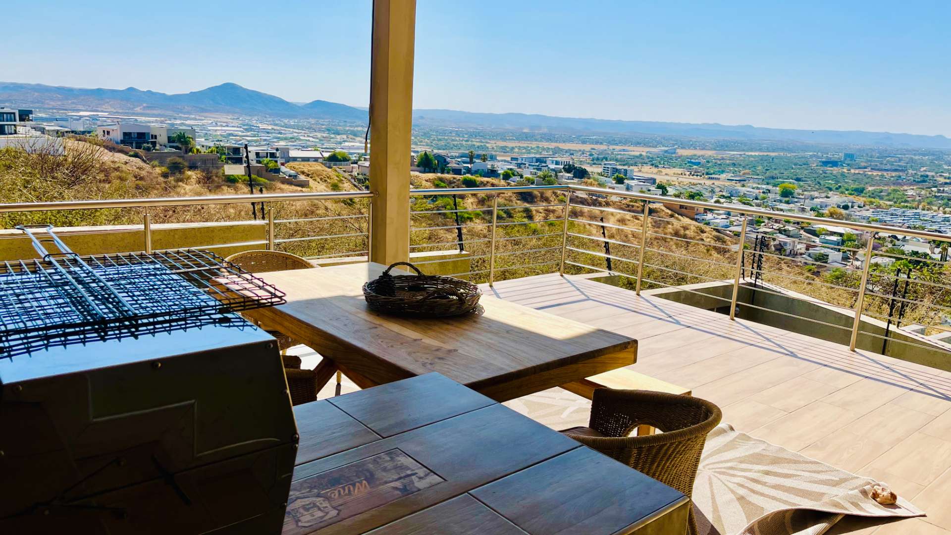 β Outdoor patio with built-in BBQ, pool & spectacular city views