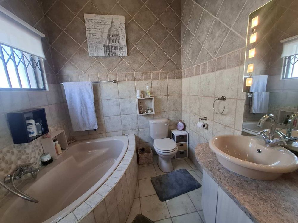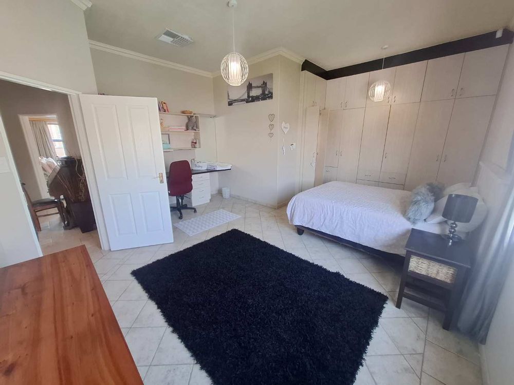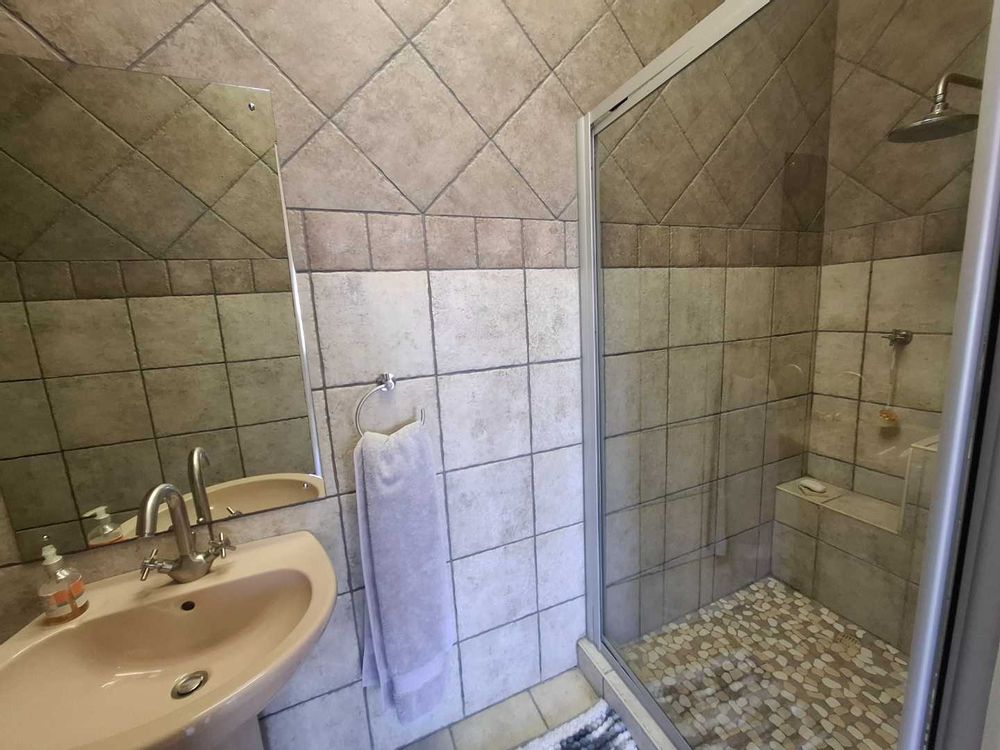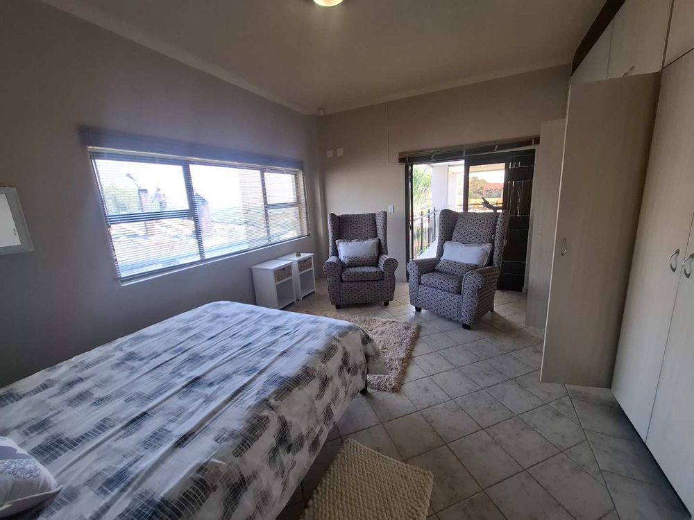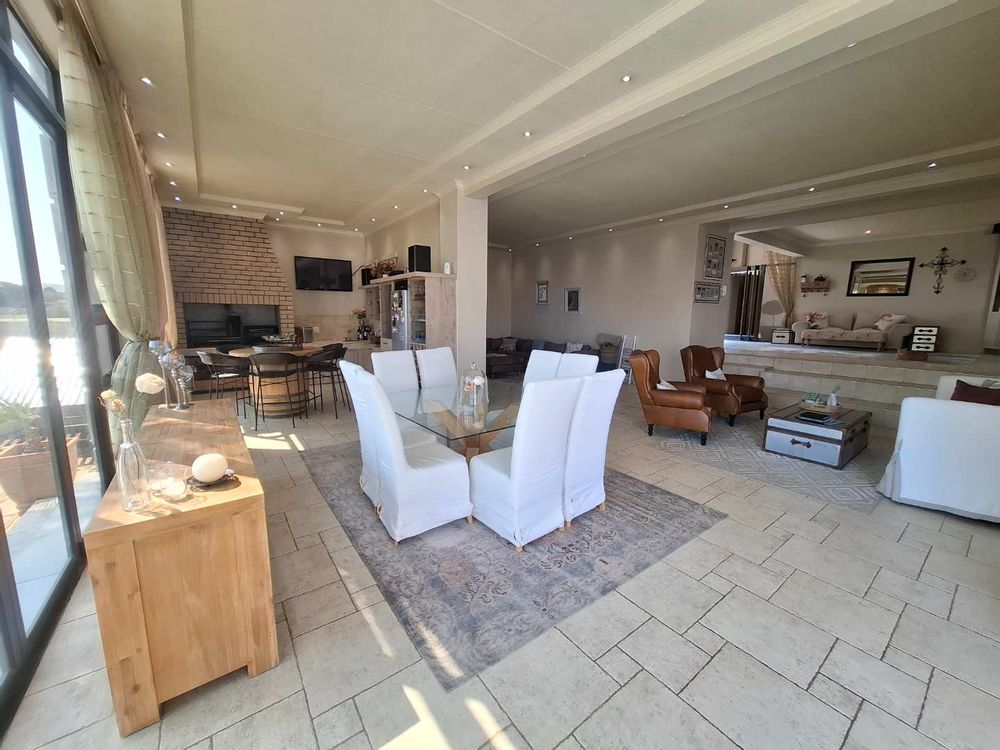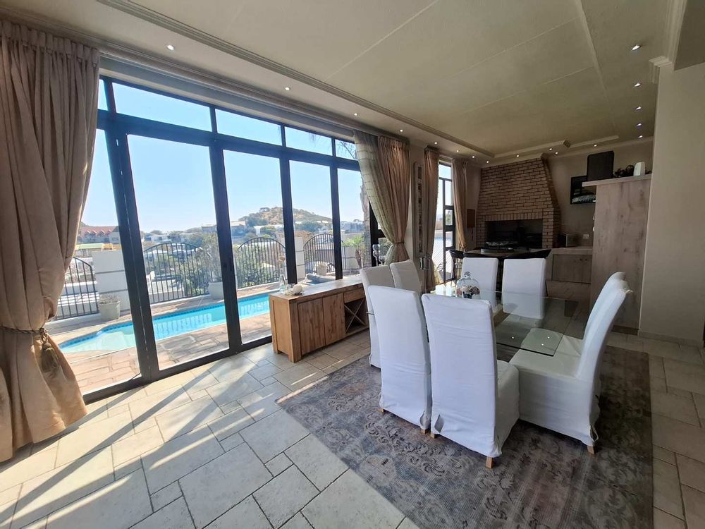 Designed for comfortable living and entertaining, the lower level boasts multiple open-plan living areas, including a dining room, TV room, lounge, and a fully enclosed BBQ room. These air-conditioned spaces enjoy uninterrupted views, and the BBQ room seamlessly connects to the garden through stack-away doors, creating a perfect indoor-outdoor flow. The kitchen is a chef’s dream, featuring a beautiful Caesarstone island, gas stove, and ample cabinetry. A spacious scullery and laundry area enhance the home's functionality. The easy-to-maintain garden surrounds a heated swimming pool, offering a serene spot to relax and soak in the stunning vistas.