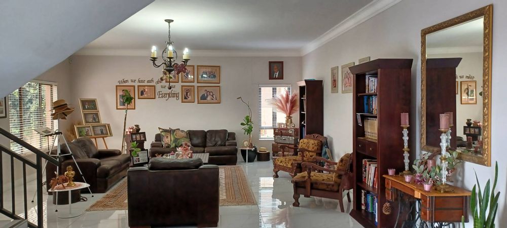 Boasting ±580m2 under roof, this elegant double-storey home has been thoughtfully designed with family living and effortless entertaining in mind. The impressive entrance hall leads you into four expansive reception and living areas, all beautifully finished and filled with natural light. These spaces flow seamlessly through stacked doors onto a large, covered entertainment veranda with a built-in braai, manageable private garden and a heated swimming pool — creating the perfect indoor–outdoor lifestyle.